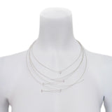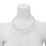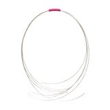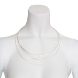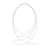 4 lines of Italian sterling silver cable held together with a curved silver tube- the ultimate in simplicity, yet a dramatic statement on your neck. The cables are free-floating and can be pulled on either side to lengthen the strands and make each piece truly unique. Click through the pictures to see the dramatic difference in look!