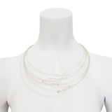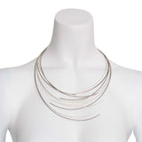 7 lines of Italian sterling silver cable held together with a curved silver tube- the ultimate in simplicity, yet a dramatic statement on your neck. The cables are free-floating and can be pulled on either side to lengthen the strands and make each piece truly unique. Click through the pictures to see the dramatic difference in look! Great any day, anytime, anywhere necklace!